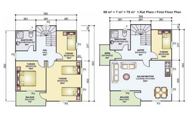 150 metrekare iki katlı prefabrik ev projesi