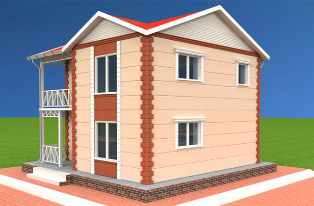 Dış ve iç paneller : Özel bükümlü paslanmaz galvaniz sacdan ve 8X1250X2500 mm ebatlarında çift taraflı çimentolu yonga levhadan (betopan) imal edilir. Isı yalıtımı için paneller arasında 84 mm 16 dansite polistiren sert köpük kullanılır. Dış panel kalınlığı 10 cm, iç panel kalınlığı 6-8-10 cm ve panel yüksekliği 250 cm’dir. olu duvar paneli, pencereli duvar paneli, vasistaslı duvar paneli ve kapılı duvar panelinden imal edilen binaların en ağır parçası (1 adet 125x250 cm dış kapılı panel için ) 114 kg dır.