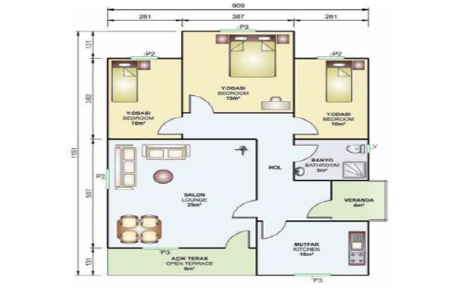 Not : Sipariş verilirken kapı ve pencere konumları ve ölçüleri mutlaka bildirilmelidir.